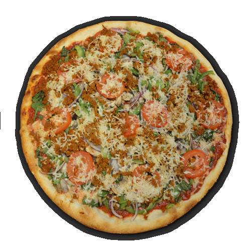 Roasted Garlic, Spinach, Mushrooms, Green Peppers, Onion, Tomatoes, Vegan Cheese, Seitan Chorizo